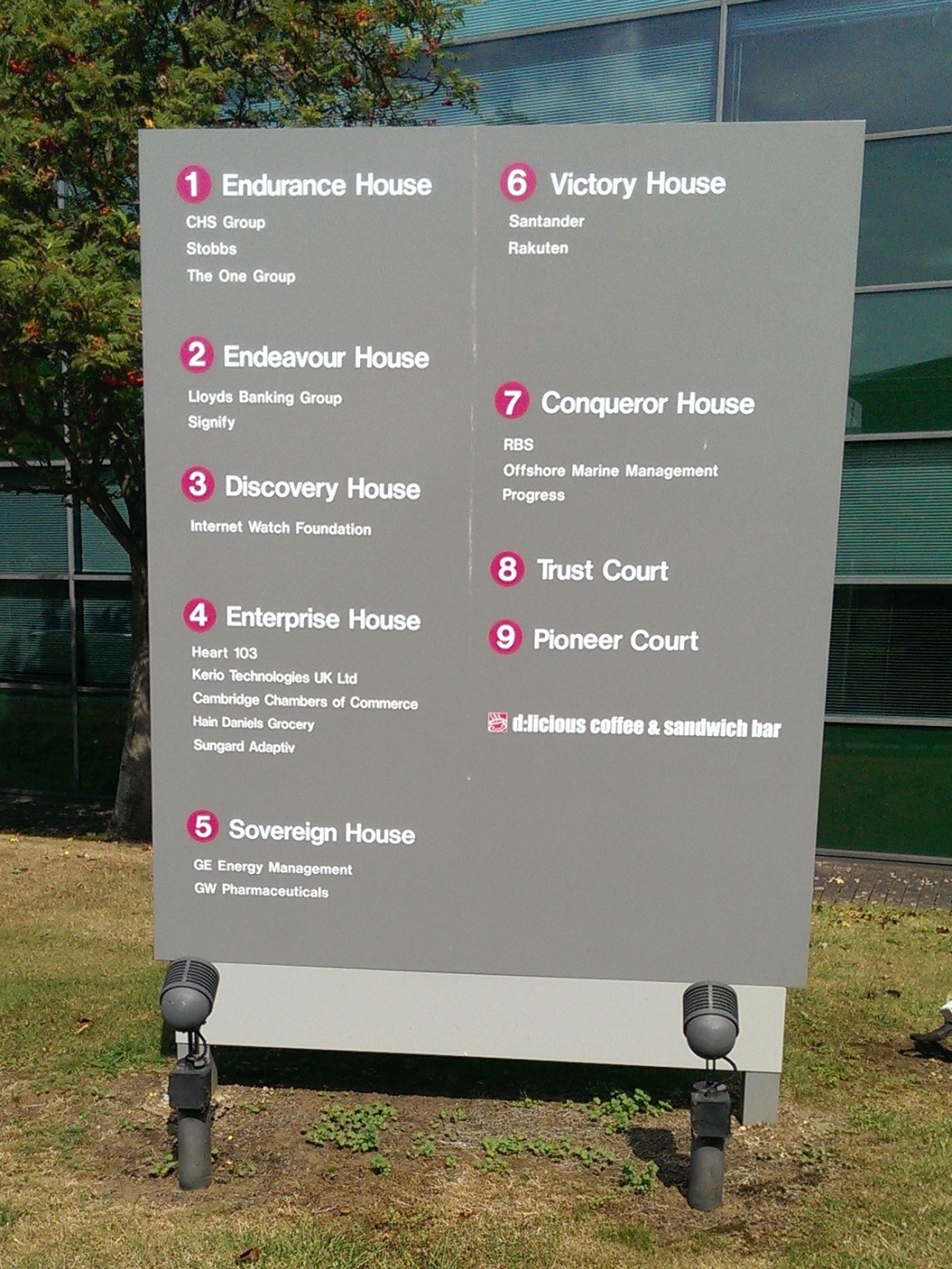 Monday 4 Jul 14: notice board at Vision Park. Vision Park is an office park in Histon on land which used to be a part of the Chivers factory. I’ve been doing an employment survey there today to gather data as a part of the Histon & Impington Neighbourhood Plan process and I find that there’s the best part of 1500 people working there.