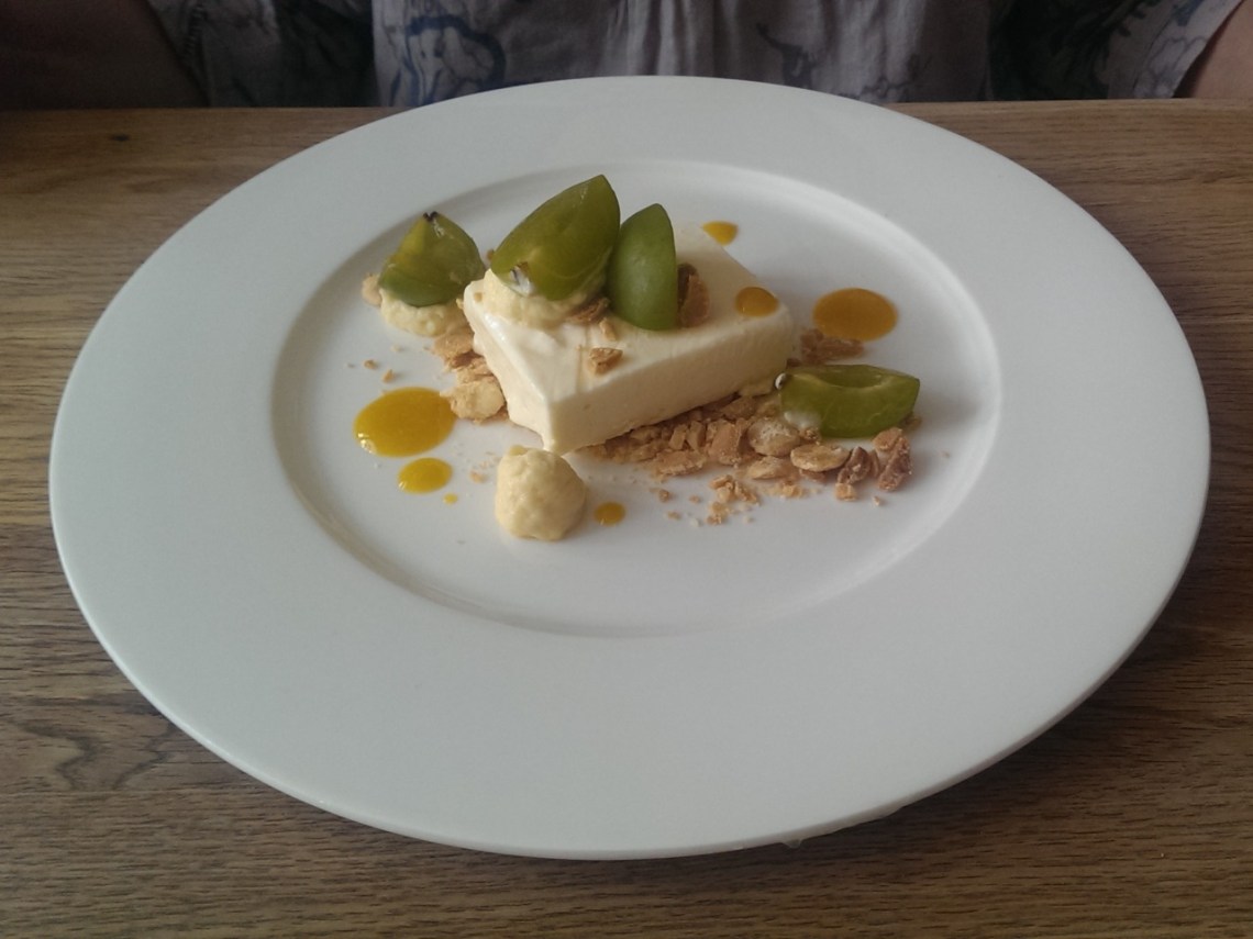 Monday 11 Aug 14: lunch at the Six Bells in Horringer. We’d just spent the best part of £2000 on a new dining table and chairs at Glasswells in Bury (St Edmunds that is) so needed a good lunch to recover. The Six Bells was recommended by friends who give good advice so we went. It was good with deserts to die for. Juni had the white chocolate parfait with greengages (as pictured).