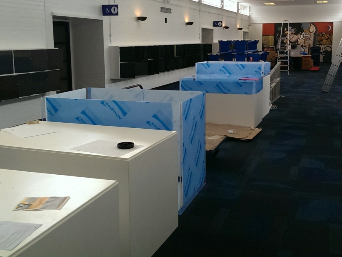 Thursday 14 Aug 14: refurbishing the prom at IVC. The prom is one of the many unique features of the buildings at IVC and its undergoing a facelift. As a part of the improvements, many of which involve putting it back to what it looked like 70 or so years ago, is the mural at the end. This is based on one of the Graham Sutherland paintings which was donated to the college and now hangs in the Meeting Room.