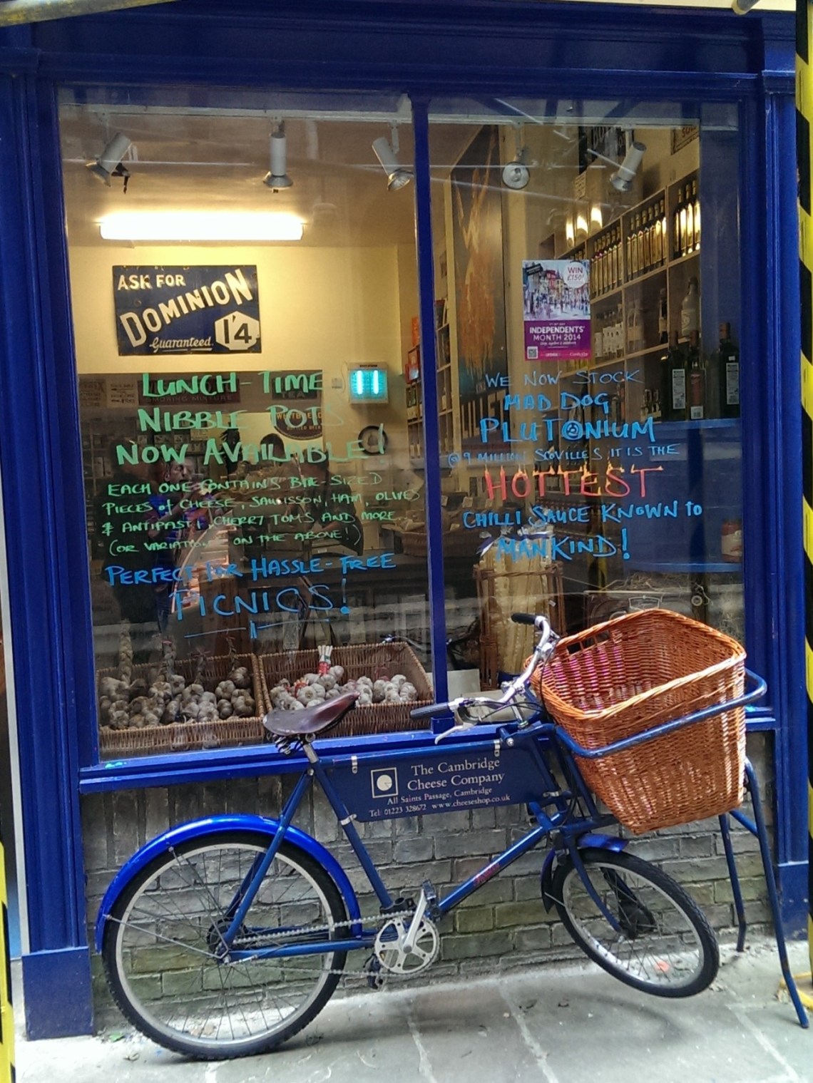 Saturday 23 Aug 14: Cambridge Cheese Company. It’s a bank holiday weekend so I thought we should have some nice cheese to enjoy with the Sauvignon Blanc that Juni’s just bought for me. I got some Brie, Cambridge Blue and Lincolnshire Poacher.