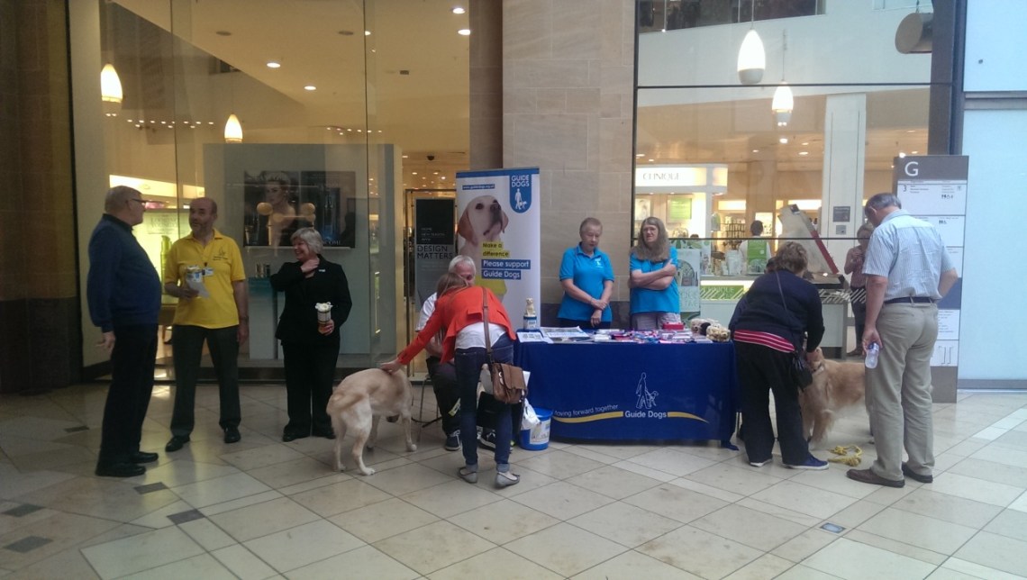 Sat 6 Sep 14: Guide dogs for the Blind in Grand Arcade. Two useless facts about GDftB (1) as a charity its objectives say nothing about guide dogs, just about helping blind people to be more mobiles; and (2) it’s the world’s largest exported of dog semen. John Reynolds, second left, is a fellow county councillor and told be about how a guide dog transformed the life of a 16 year old who’d never been out along before she got her dog. They do have the ability to transform lives and I think they also have a positive effect on others, not just their owners. There’s something special about animals doing visibly useful tasks. It’s the same with police horses.