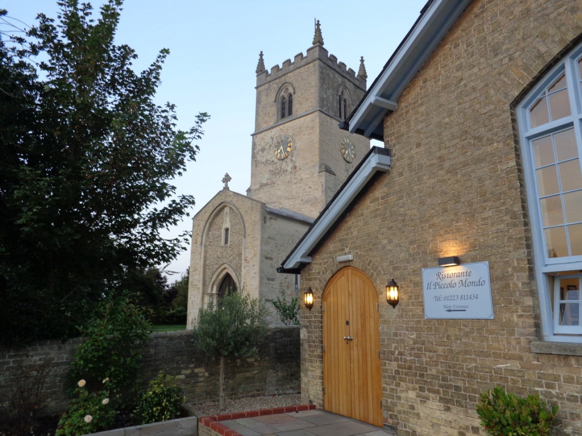 Wed 10 Sep 14: Piccolo Mondo in Bottisham. This place has an incredible reputation and generally you have to book well in advance. We did and it was my birthday dinner. The restaurant itself is in the old school hall next to the village church and it really is very good.