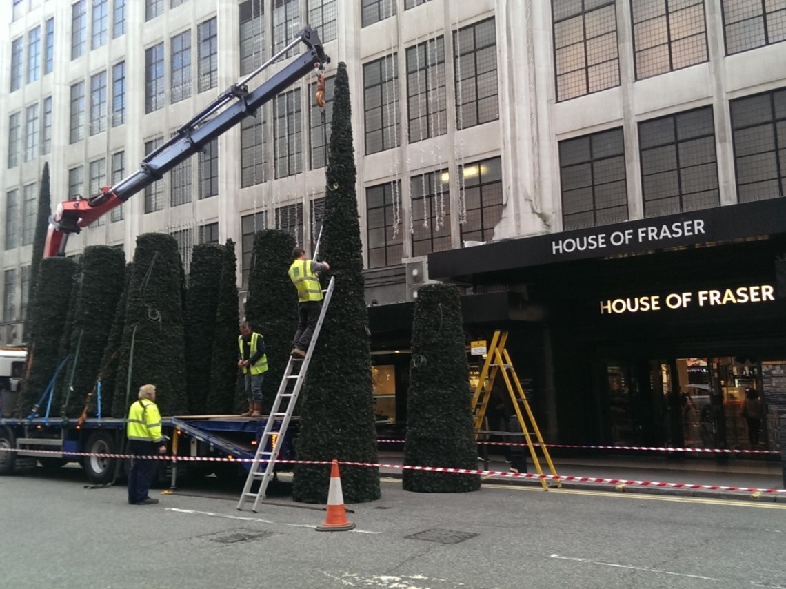 Sun 19 Oct 14: Xmas trees going up @houseoffraser in Oxford Street. I was down in London @guardianclasses @RoySocMed and saw these early preparations. It was a warm October Sunday which didn’t put you in the mood for Xmas just yet.