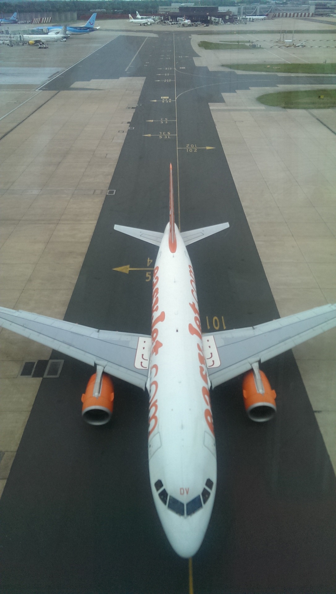 Mon 8 Jun 15: @gatwick_airport there’s an amazing walkway/bridge to access gates 100 plus. Here’s a bird’s eye view of @easyjet plane just heading through it.