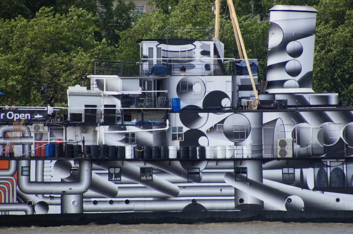 Wed 17 Jun 15: wedding anniversary day so we had a day in London: @thelondoneye, talk along the Thames Path and dinner @del_mercato. This dazzle ship is opposite the OXO building