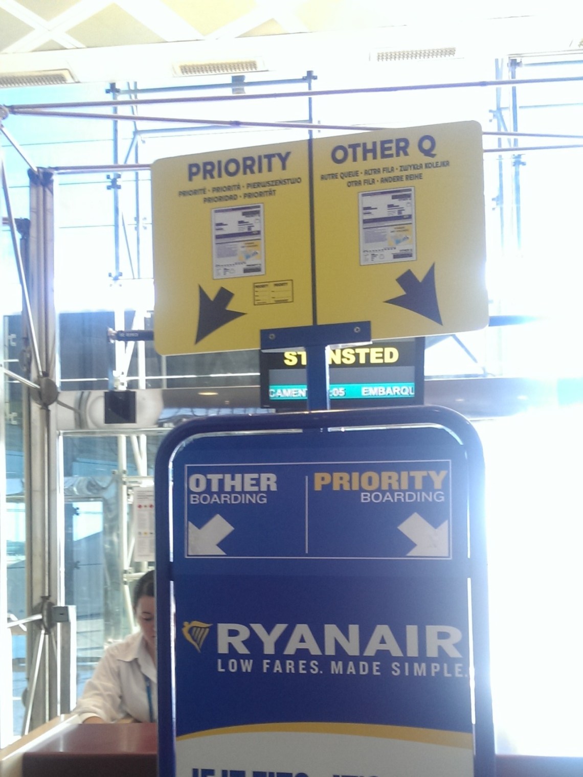 Fri 26 Jun 15: ryanair giving travellers a little too much choice … but we boarded OK, flight was on time and then got the @stn_airport immigration experience.