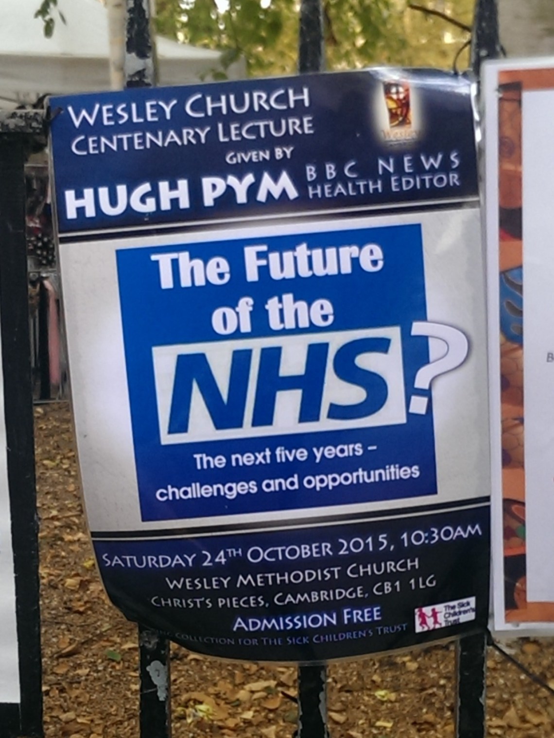 Sat 10 Oct 15: this would seem an especially timely event given the recent news regarding the build-up of deficits across the NHS. Fact is we need a complete rethink to reduce demand and that’s not going to be easy when the government chops the grants available for preventative services (political plug).