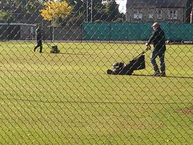Mon 12 Oct 15: end of the tennis season. Groundstaff tidying up the tennis courts @hisimpnet ready for the winter break