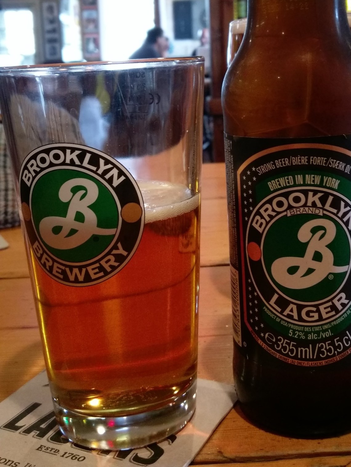 22 Apr 16: @brooklynbrewery lager @redlionhiston. different beer for lunch but same but excellent BBM (bacon, brie and mushroom) baguette