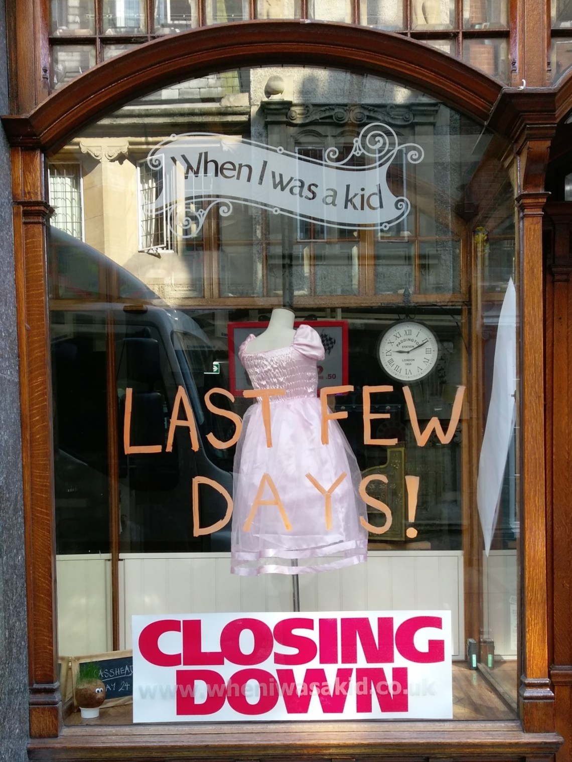Thu 12 May 16: sad sight on Trinity Street in Cambridge. @wheniwasakid independent toy store closing down. Is it because @trinity1546 is a rapacious landlord? What sort of faceless national chain will take its place?