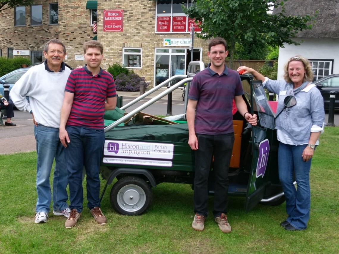Sat 9 Jul 16: Histon Feast Market on The Green with fellow members @hisimpnet L to R JDJ, Simon Joslin, Andy Butcher (vice chair), Christine Hertoghe together with the council’s little Piaggio @piaggioofficial