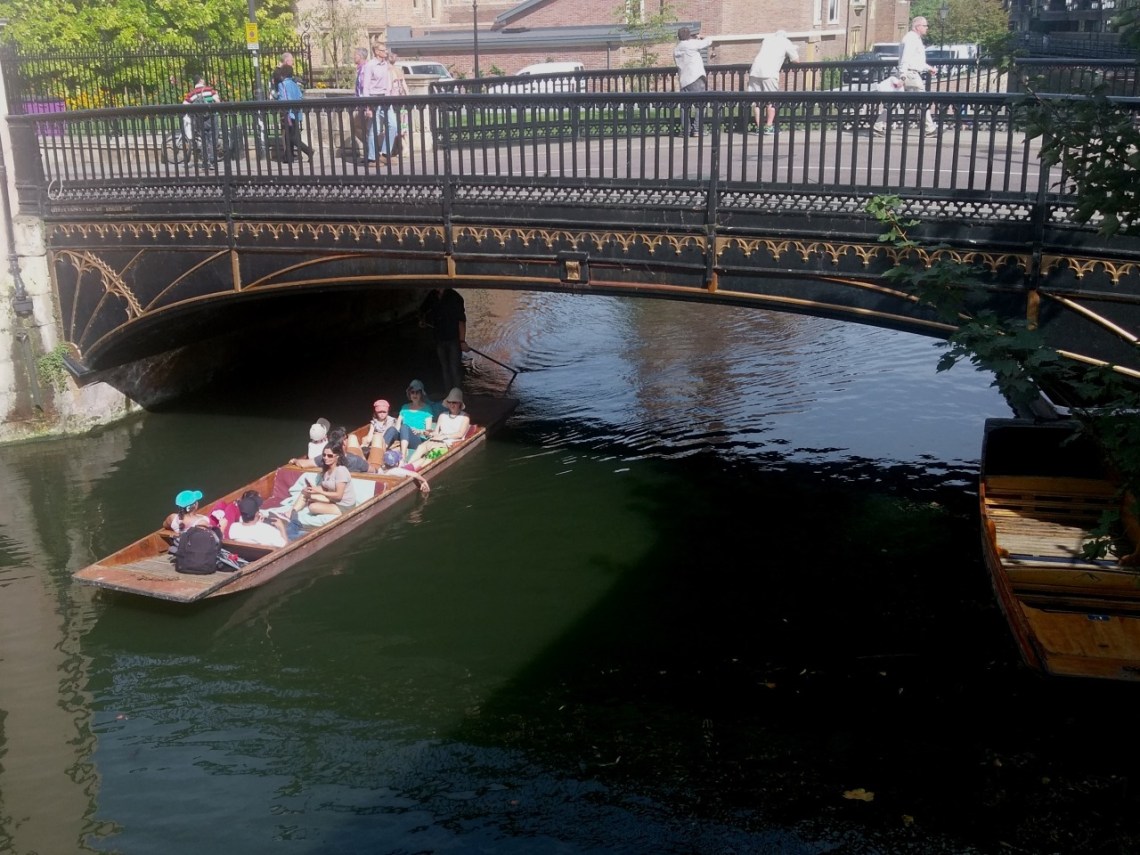 Tue 13 Sep 16: would you believe 30 degrees in Cambridge in September? Still good for getting sunburnt in a punt. Picture taken from my favorite lunchtime haunt: the balcony at the Galleria on Magdalene Bridge.