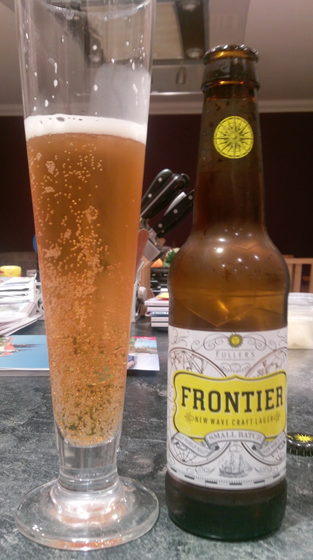 Fri 4 Nov 16: @frontierlarger @fullers. Bought a couple of bottles @waitrose and well worth the purchase. Not your usual UK lager piss.