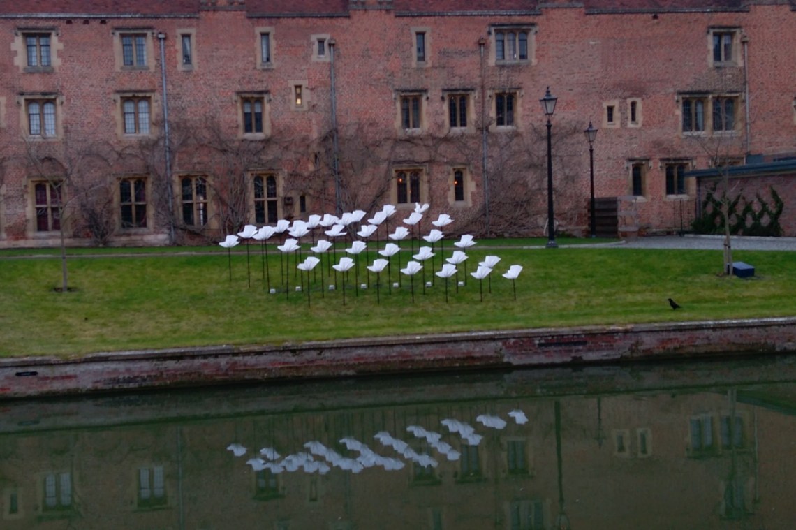 Thu 9 Feb 17: wasn’t sure what these were at the side of Magdalene but then the wires gave it away. Something for E-luminate @visitcambs. It’s on this weekend and well worth a visit. Last time was something special http://www.visitcambridge.org/whats-on/major-festivals-and-events/e-luminate-festival