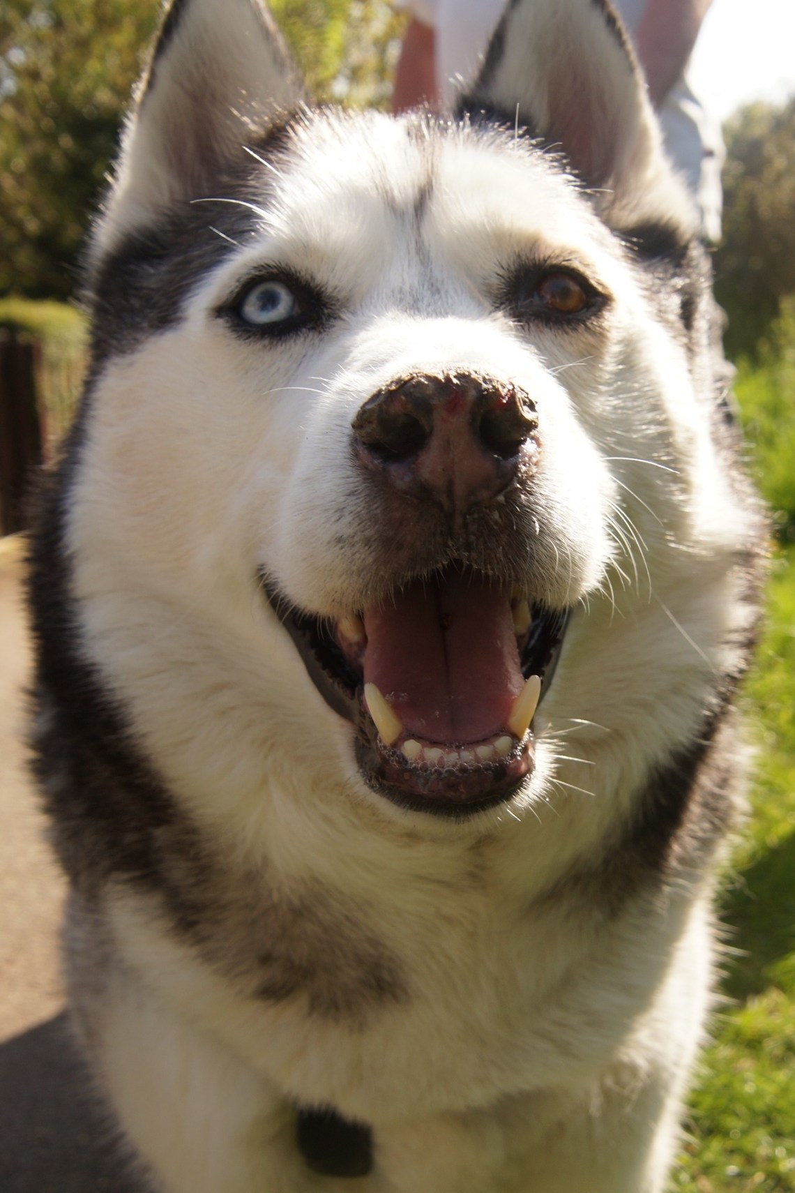 Sun 9 Apr 17: I’m told that different colored eyes are characteristic of huskies.Well this one clearly complies but he’s not as scrawny as the huskies which pulled by dog sled in Tromso.