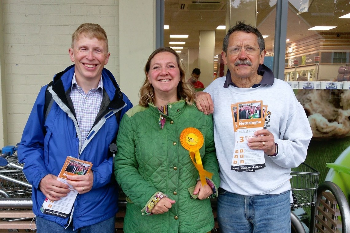Tue 6 Jun 17: my last political photo for the time being … keeping dry under the awning @tesco with @lnethsingha and Steve Hunt.