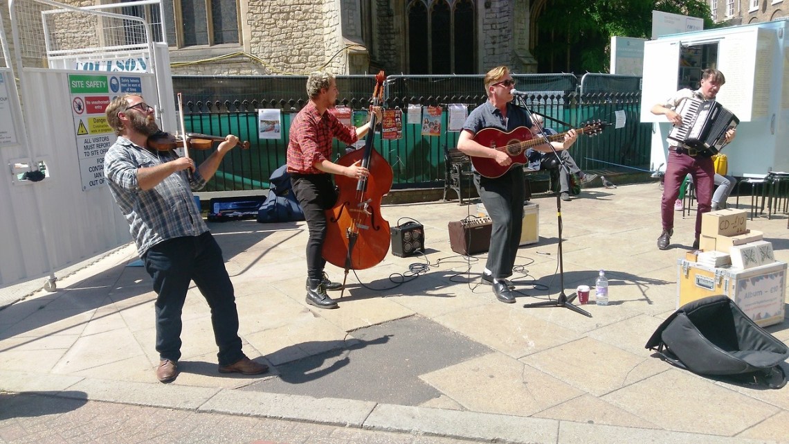 Sat 10 Jun 17: the Hyde Family making a splendid noise on Saturday morning in Cambridge. It wasn’t just a great noise but there was lots of energy with much movement to exemplify the music. Super to just stand and watch.