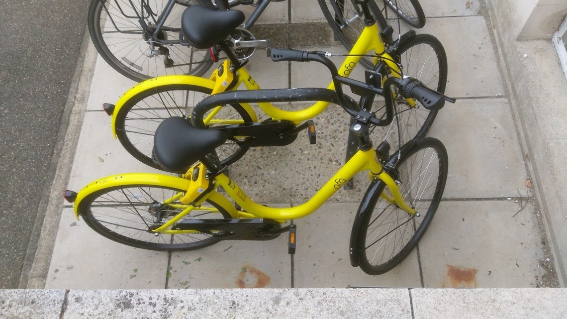 Mon 10 Jul 17: ofo bikes outside Shire Hall. These rental bikes have been in Cambridge since April but there’s surprisingly little information on-line