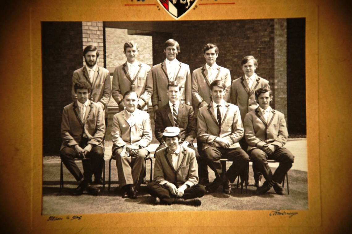 Wed 16 Aug 17: 50 years ago! @churchillcol 6th May boat 1967. Geoff Butlin 2nd right seated is on Oakington PC, I’m still in touch with Ed Libbey, 1st left standing. Ed and I shared a house with Mike Moles, 2nd right standing in 1969. Mike’s sadly already died. I met Bob Bell, 2nd right standing recently and Canon Noel Duckworth, 2nd left sitting, I guess is now coaching ‘up there’.
