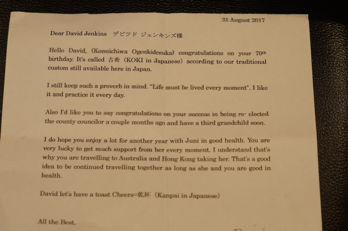 Thu 7 Sep 17: I’m getting a few birthday cards (my birthday’s on the 10th) and this is one of the best. From my very good friend Kyoji in Japan.