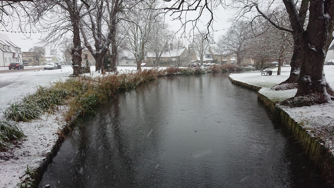 Sun 10 Dec 17: can’t really post anything else today. It’s a stereotype I know but we don’t often get snow and rarely so early in the year. That’s the brook on Histon Green …