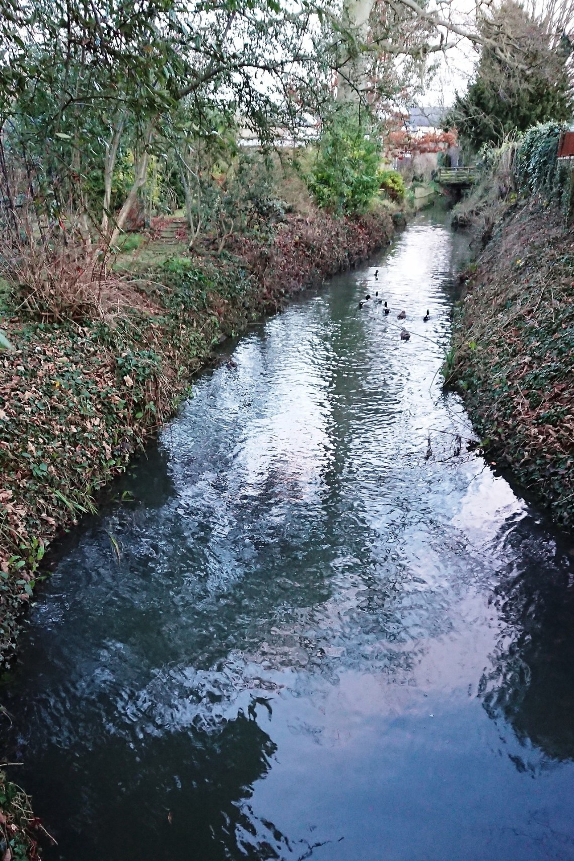 Fri 29 Dec 17: Histon Brook as it enters the culvert under Park Lane by Harding Way. It’s pretty full after the recent rain and snow but it’s good to see it flowing and doing its job.
