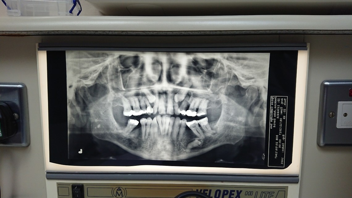 Fri 5 Jan 18: that’s my mouth and those are my teeth including the two ectopic ones which have never deigned to emerge. I agreed to allow the surgeon to take out the one on the right. It’s going to be some excavation …