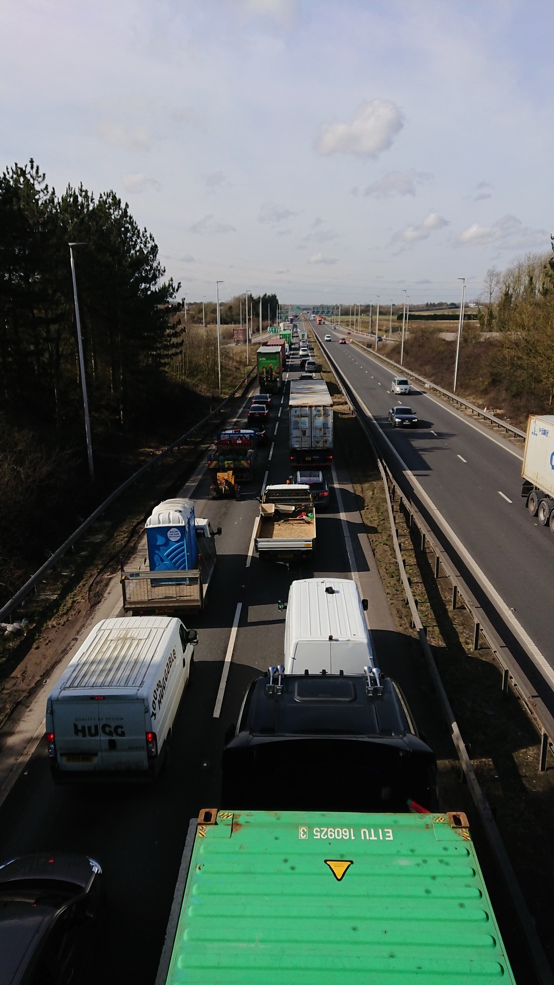 Wed 14 Mar 18: the pleasures of living close to the A14. It seems that not a day goes by without a jam one way or another. This one was particularly bad.