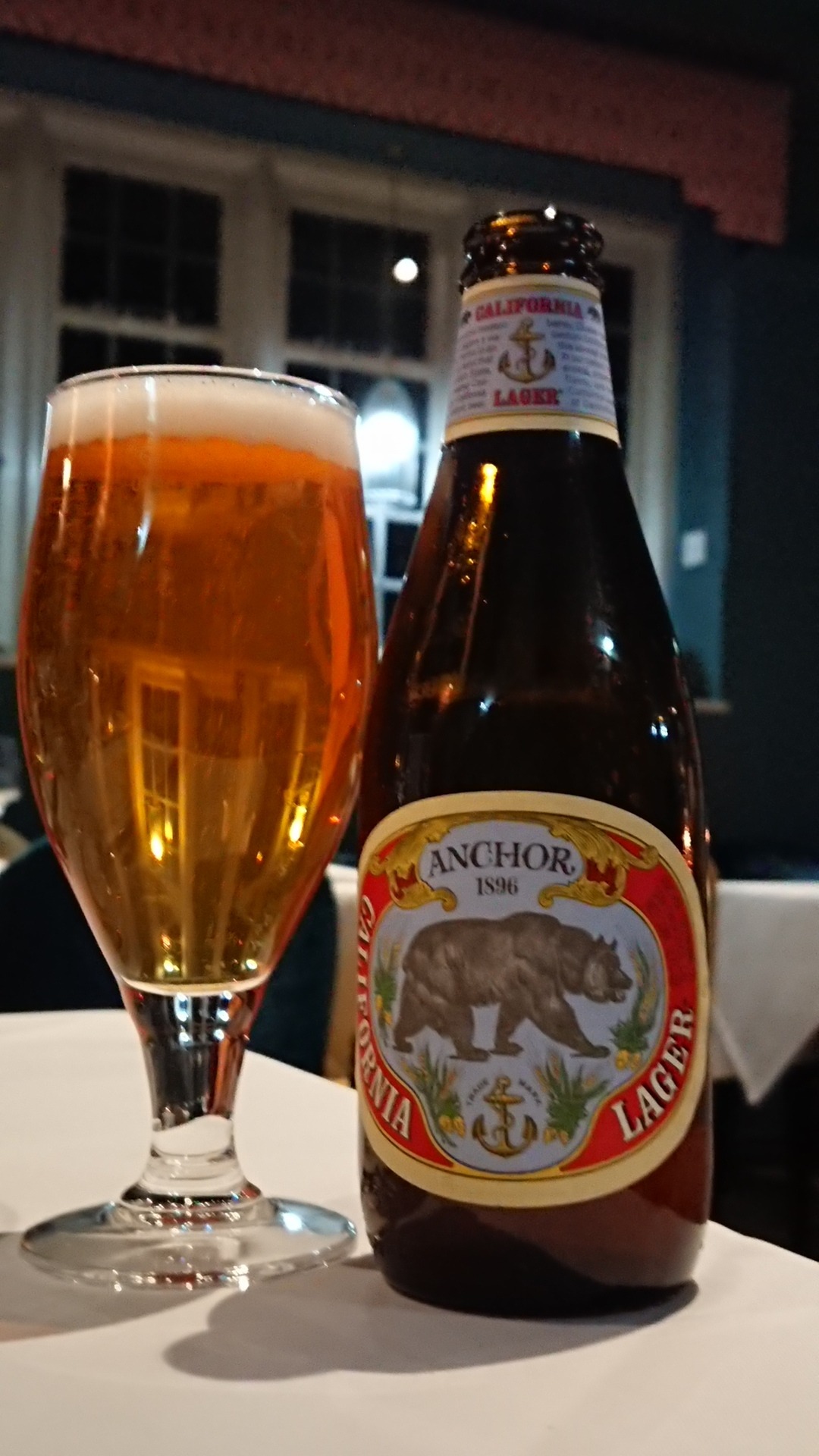 Wed 22 Apr 18: an excellent bottle of lager @anchorbrewing at the new @oldcrowngirton. Super art deco interior and a splendid choice of stuff to drink! Foods not bad too.