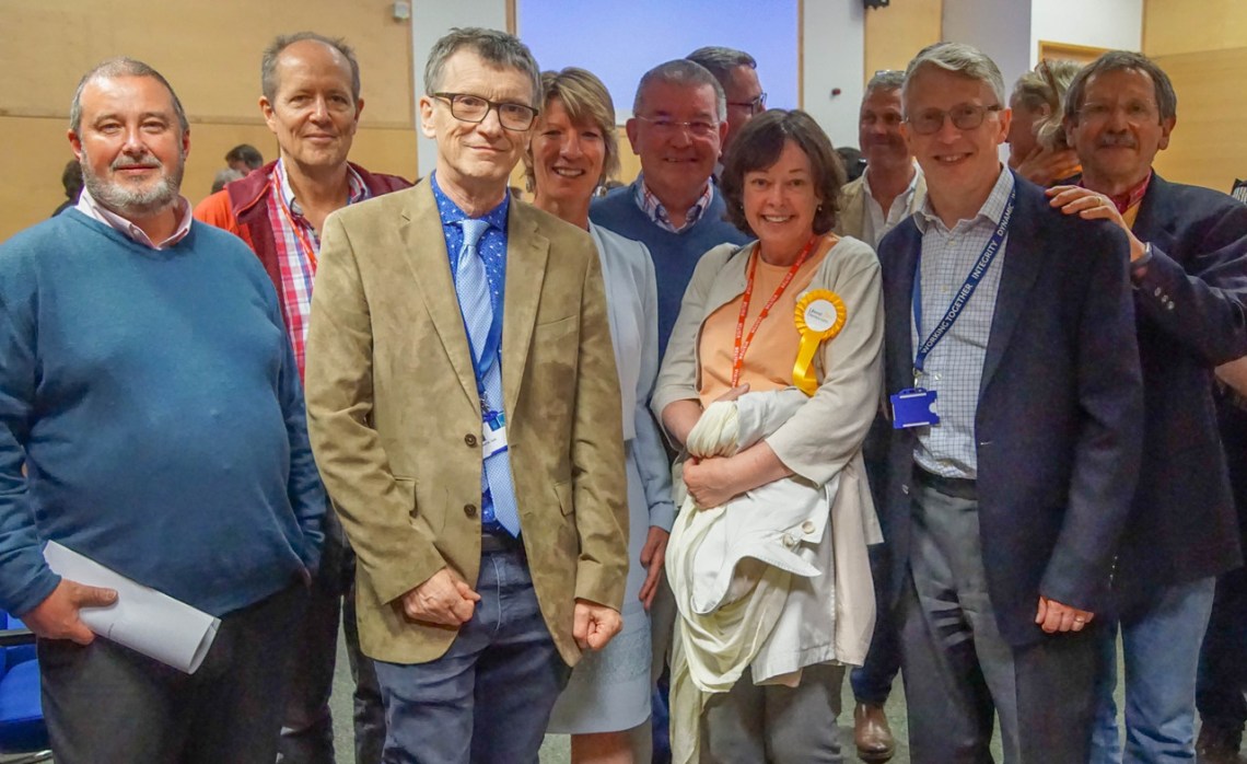 Wed 23 May 18: the three new HIOP Lib Dem councillors at their first council meeting along with a few of their core supporters.