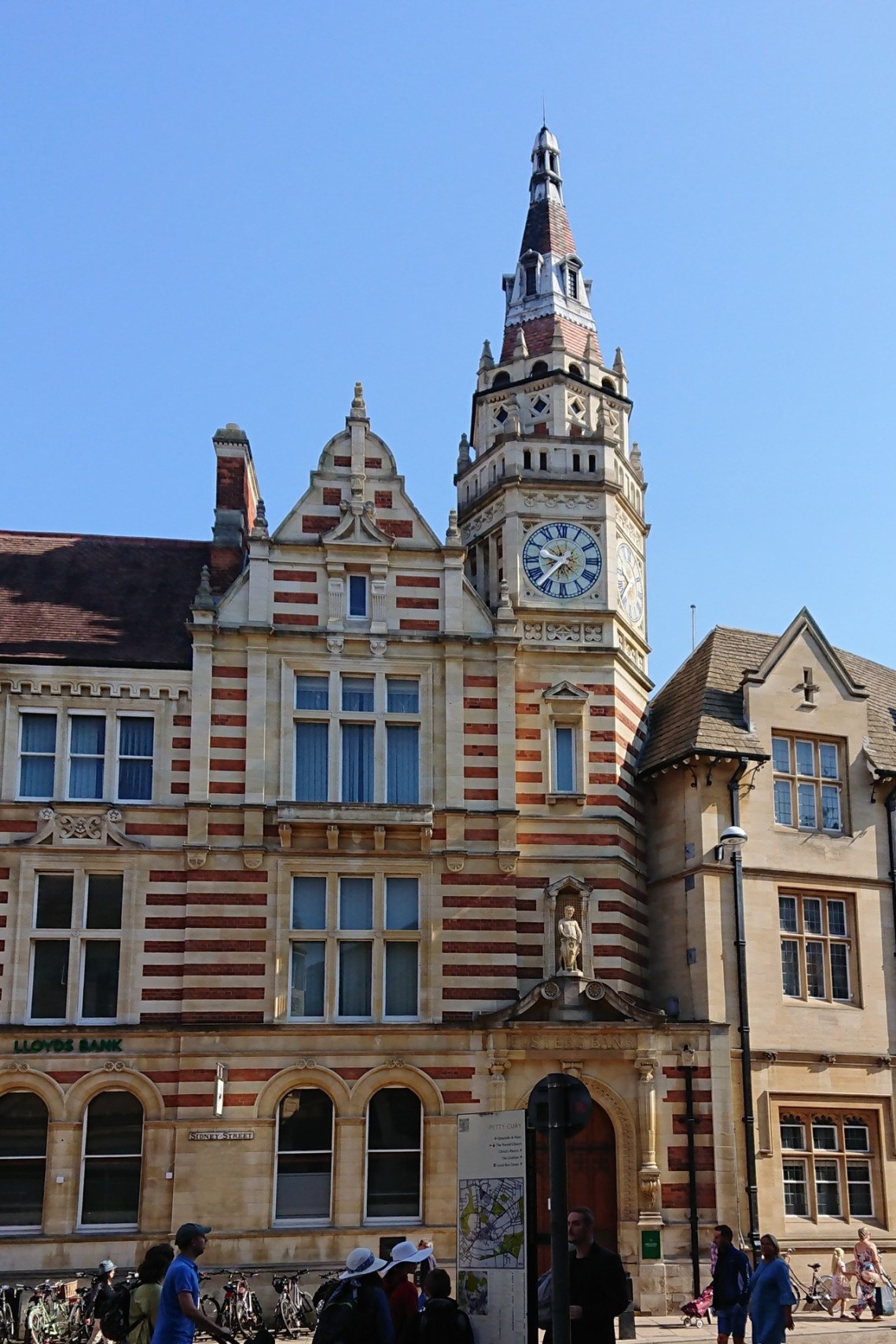 Sat 1 Sep 18: when you’re thinking about Cambridge’s better buildings don’t forget this one, the Foster’s Bank building.It’s now a branch of Lloyds. The inside is as impressive as the outside. Note the clock on the tower which yesterday was an hour slow, I guess they just don’t adjust it for BST