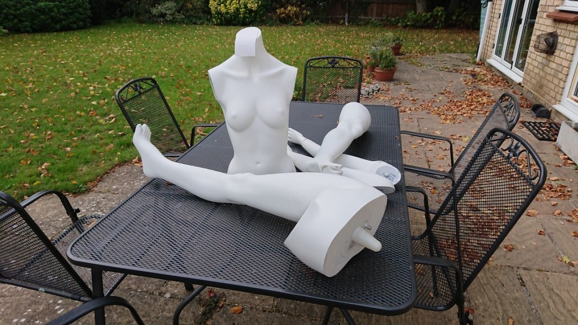 Sat 27 Oct 18: parts of a mannequin rescued from the sadly closing 19:10 boutique in Cambridge. Makes you wonder what the @CambridgeBID is doing to support independent shopkeepers