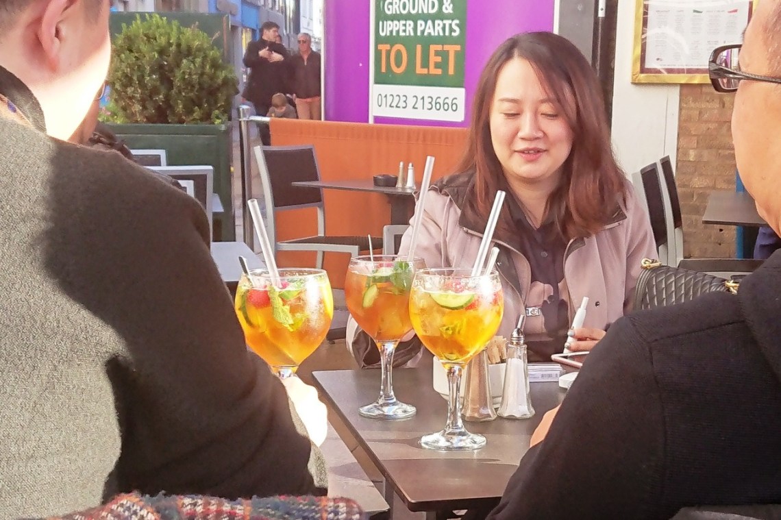 Sat 10 Nov 18: great morning in Cambridge sunny and warm enough to sit outside @thedonpasquale. Nice enough to start the day with a round of Pimms!