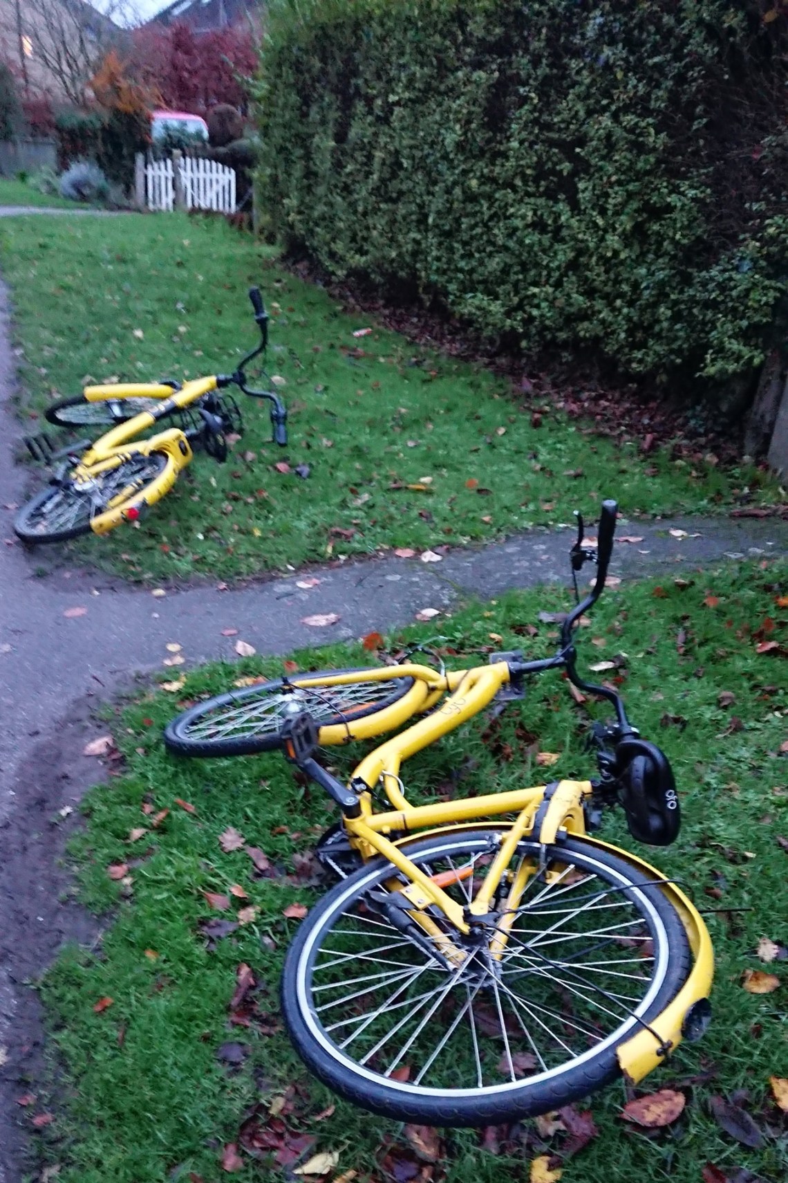 Thu 6 Dec 18: pls@ofo_bicyclesuk sort out your system. We see too many of your bikes dumped in Histon & Impington
