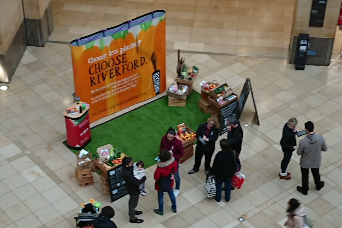Sat 12 Jan 18: @riverford stand @grand_arcade showing off their credentials. good fresh veg and no unnecessary plastic packaging