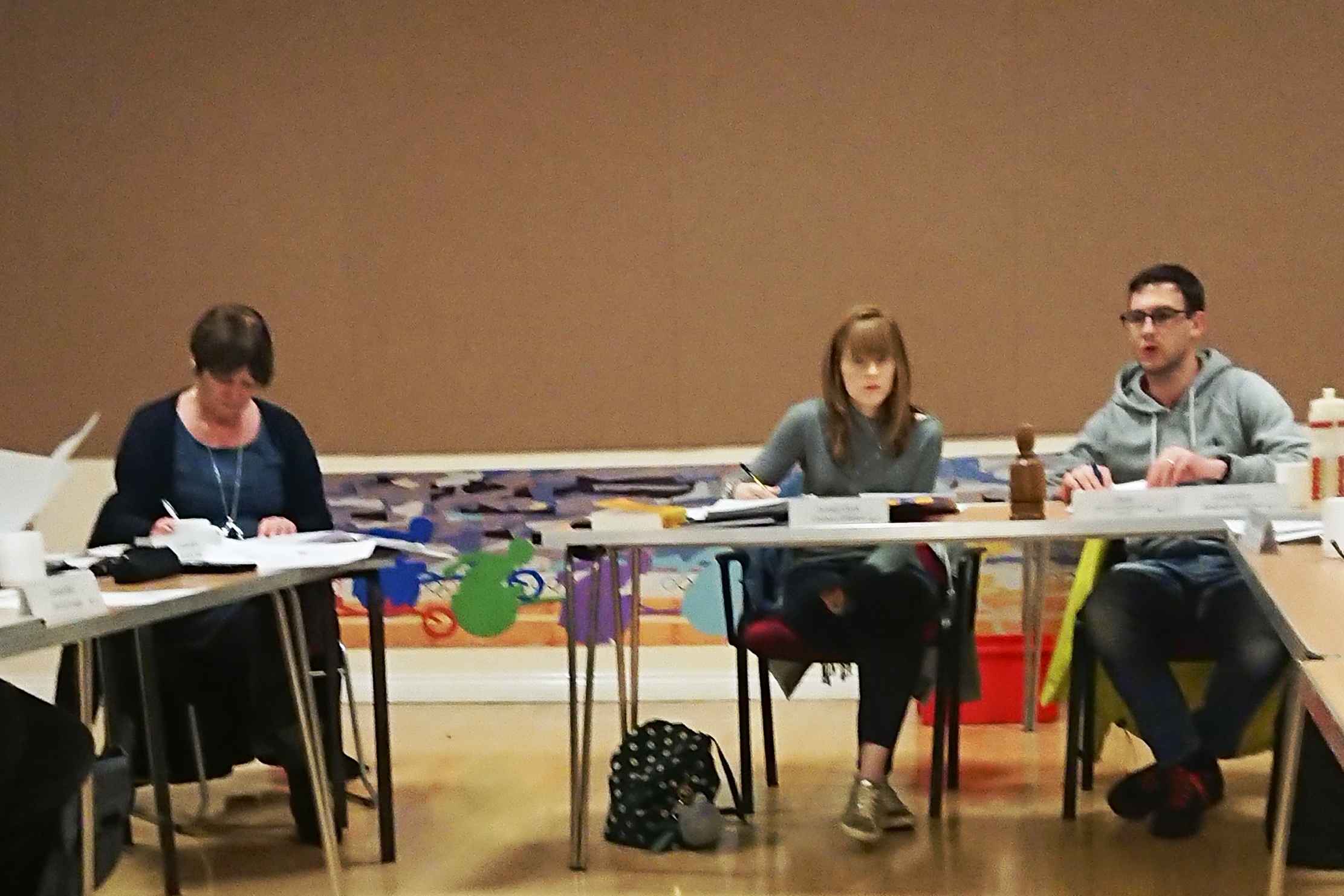 Mon 18 Feb 19: at last night’s parish council meeting we saw the excellent and older outgoing clerk Angela Young hand over to the equally excellent and younger Chelsea O-Brien. PC chair Andy Butcher being well looked after. Please pardon the picture quality: low light and hand held phone from a distance!