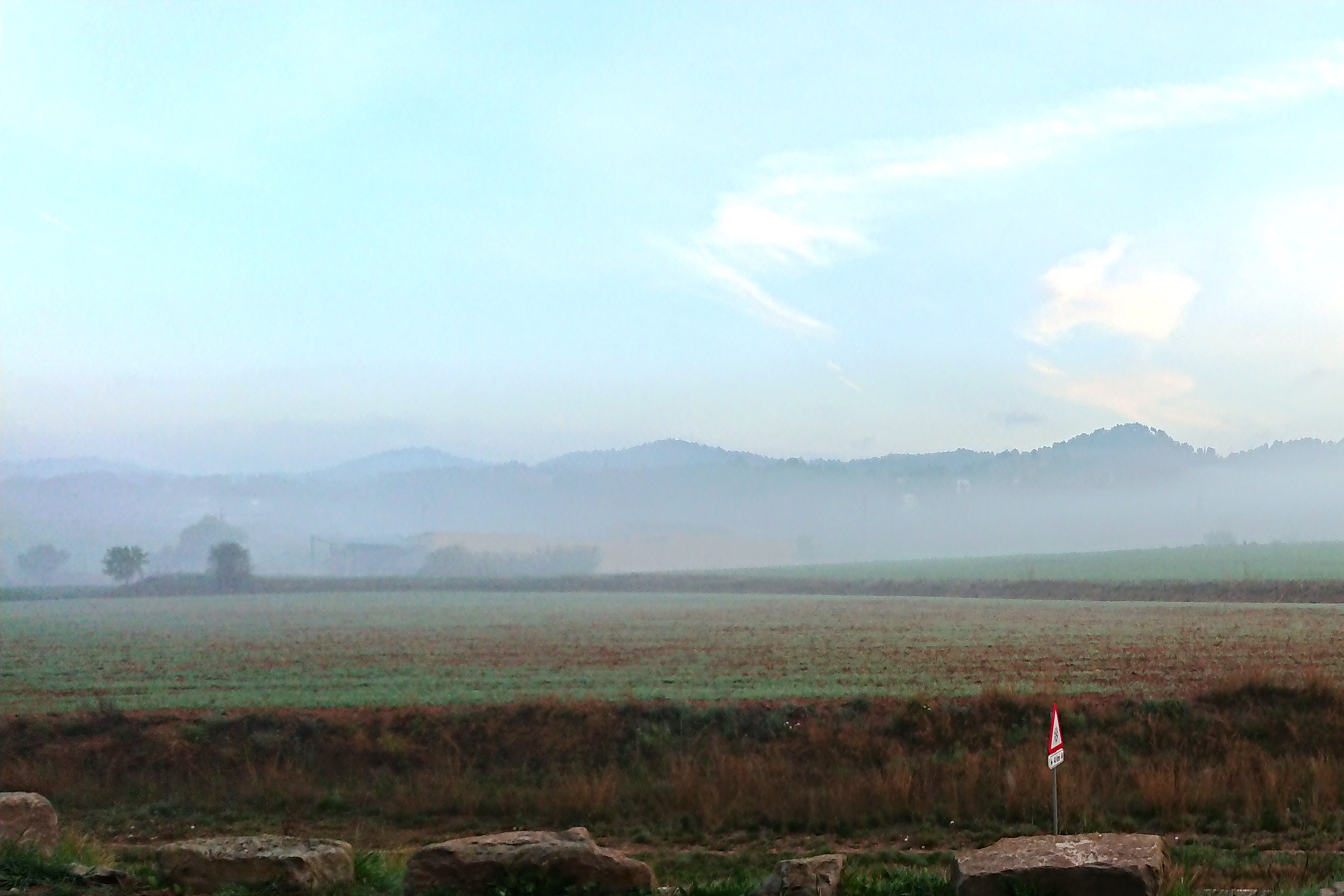 Wed 10 Apr 19: just 3 degrees at 0745 (CET). Being so far west in the timezone it was still dark at 0700 and with a high of about 20 degrees the day before a good morning mist was inevitable. Pity about the road sign. Maybe I’ll photoshop it later.