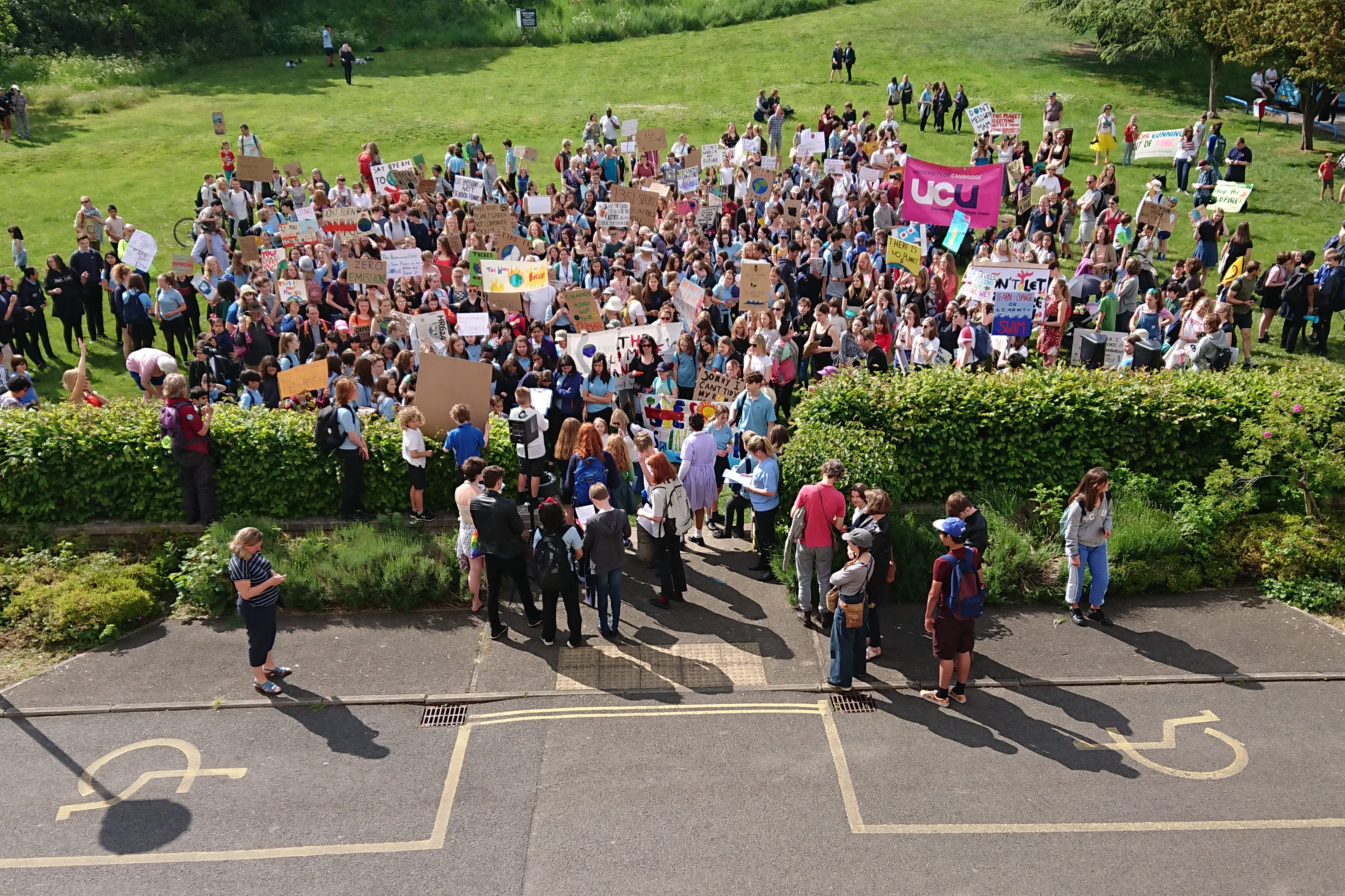 Fri 24 May 19: you’ve got to admire these kids and to respect what’ they’re ‘striking’ for. Slowly, and at last, government at all levels seems to be waking up to the ‘climate emergency’. This photo is for the gathering on the lawn in the front of Shire Hall before they set out on their march.