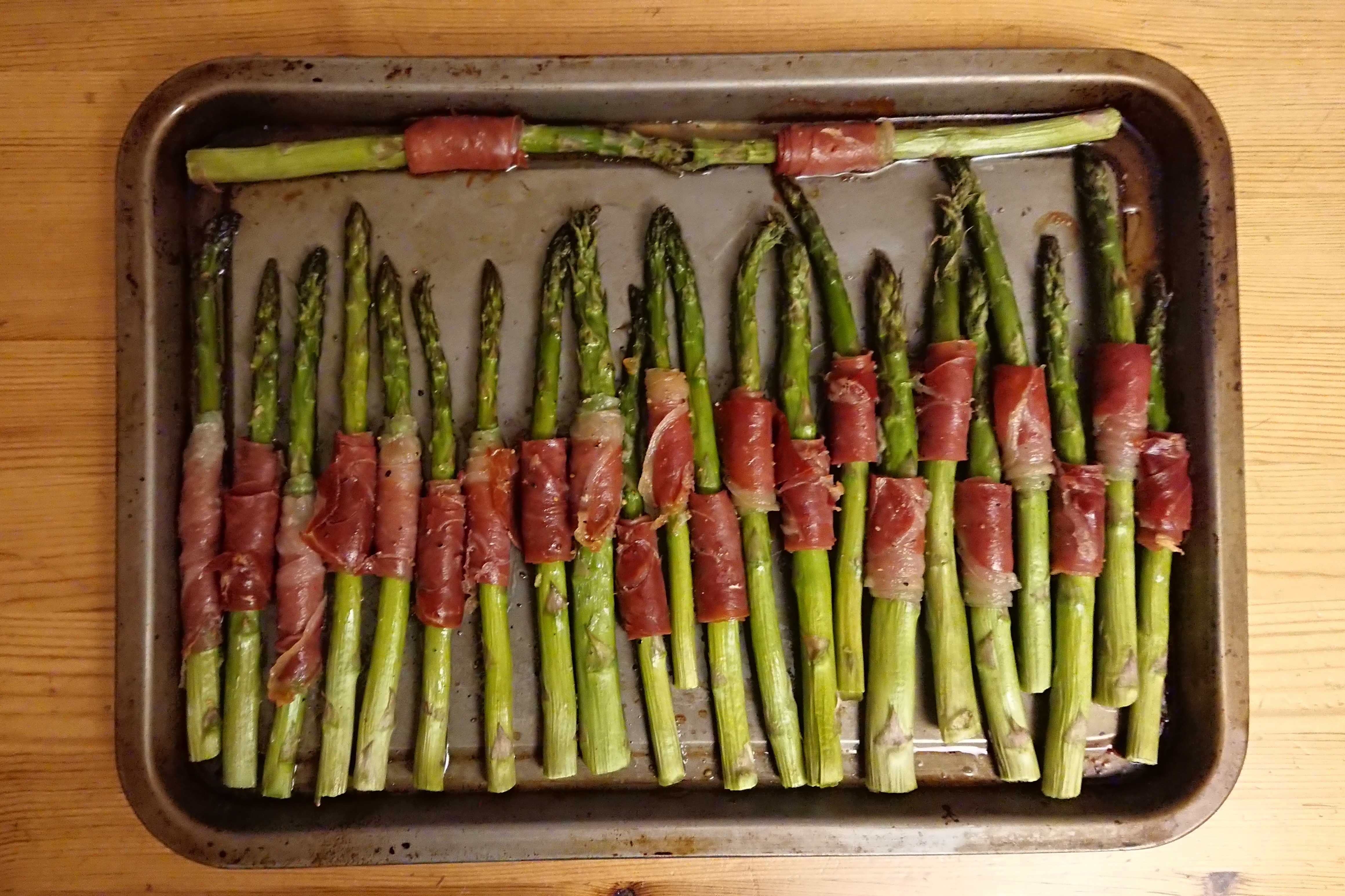 15 Jul 19: asparagus with Parma Ham. Not sure if it’s any better than the sum of its parts. Serious urine smell to follow!