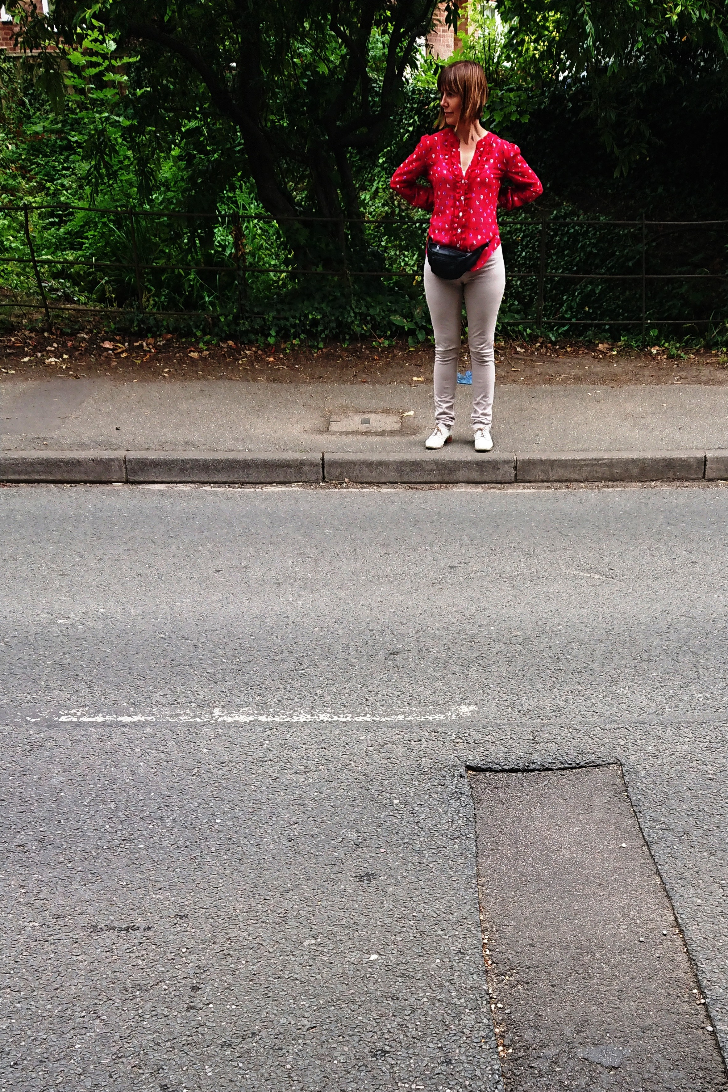 Wed 17 Jul 19: new parish councillor Yvonne Murray on duty with our local highways officer looking at planned works on Park Lane.