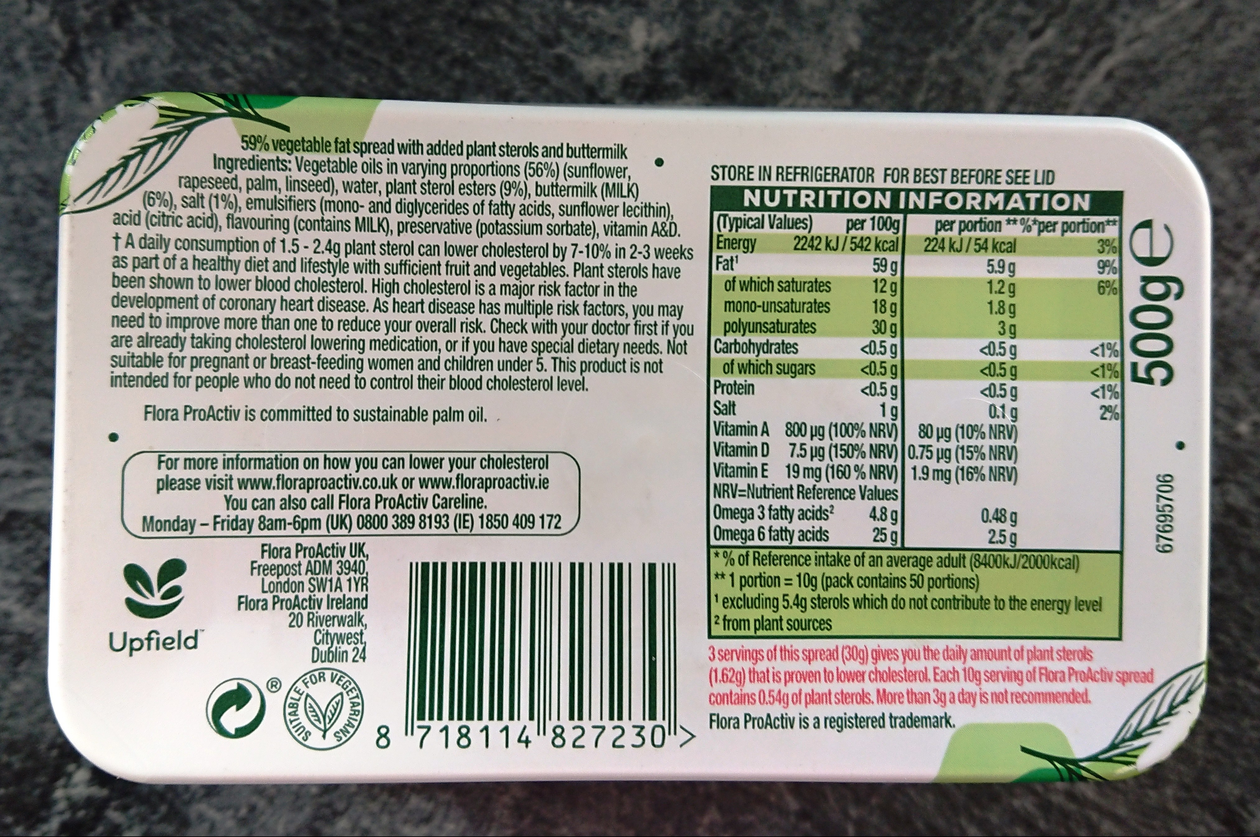 On its pack Flora says it is ‘committed to sustainable palm oil’ which is good but avoids telling us that its packaging is a single use plastic and offers not advice about how it can be recycled. The Green Dot is an unfortunate obfuscation. It’s website is remarkably free of any specific advice.