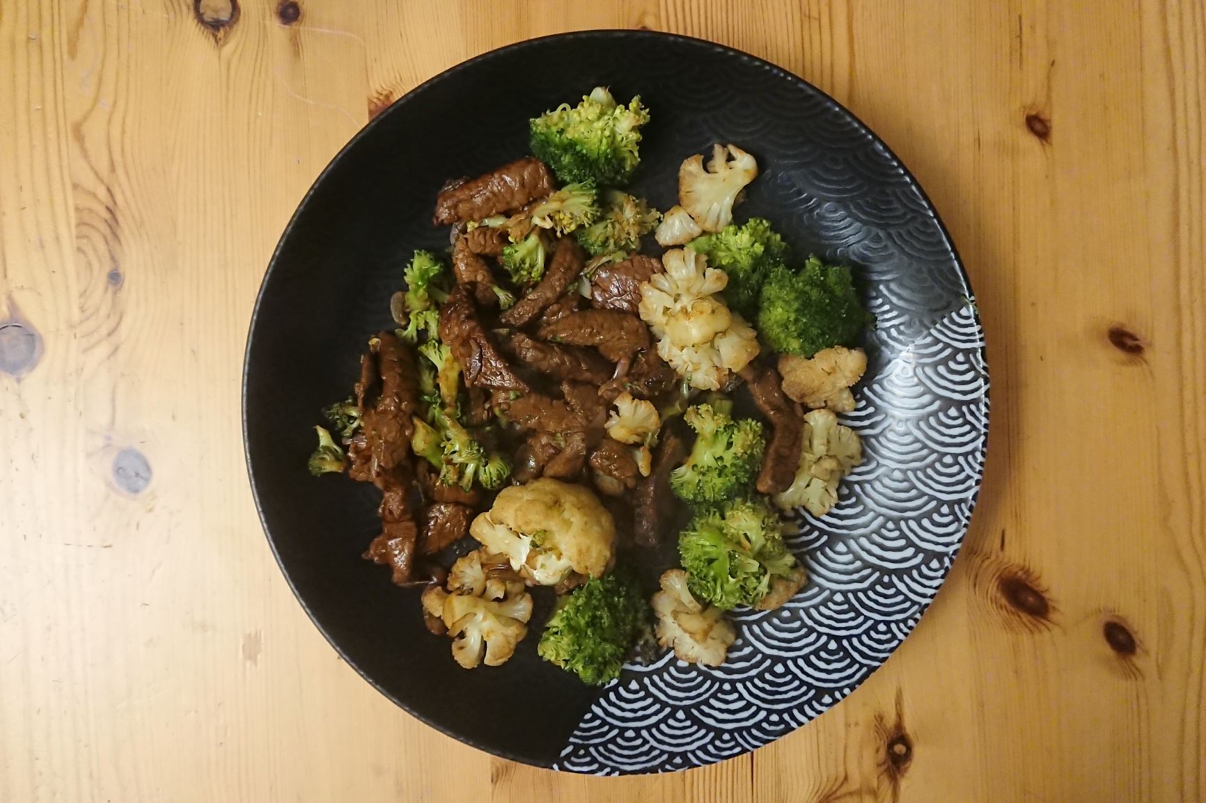 Wed 21 Oct 20: beef with broccoli and cauliflower. Sharing a secret the beef is fillet from the batch which Iain ordered for us and which we had to freeze.