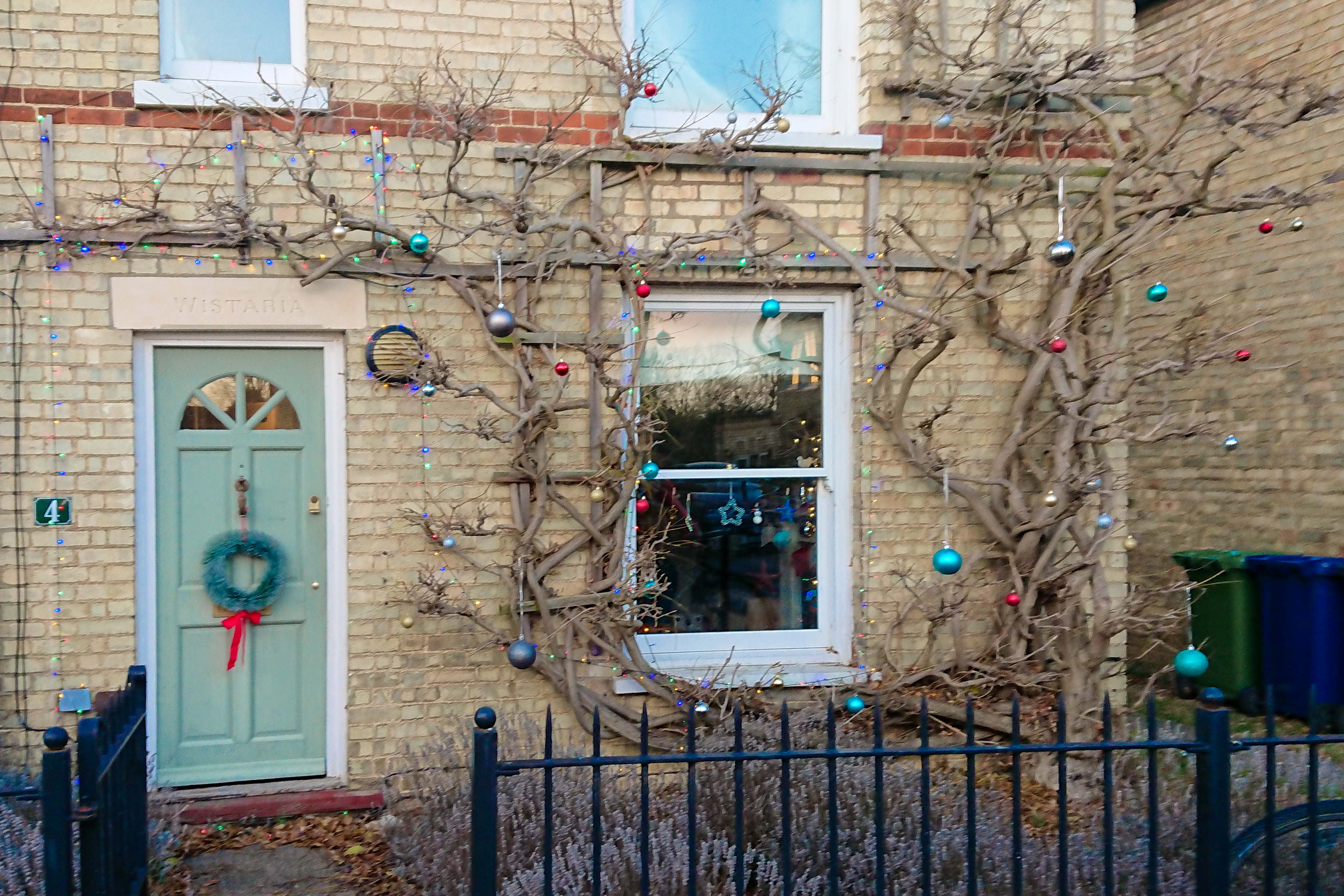 Thu 24 Dec 20: lots of Xmas lights this year and I’m grateful for them but this household has really done something rather nice and exploited its wisteria as a framework for its outdoor decorations