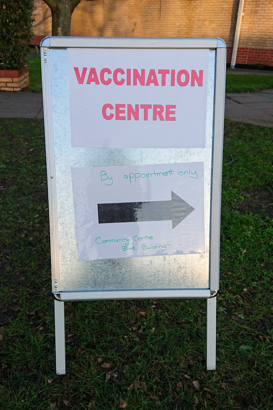Thu 21 Jan 21: direction boards are up, volunteer queue marshals are in place and there’s an army of qualified NHS people giving jabs. Early teething troubles unsurprisingly because there’s a certain amount of ‘making it up as we go along’ but they seem to be getting there.