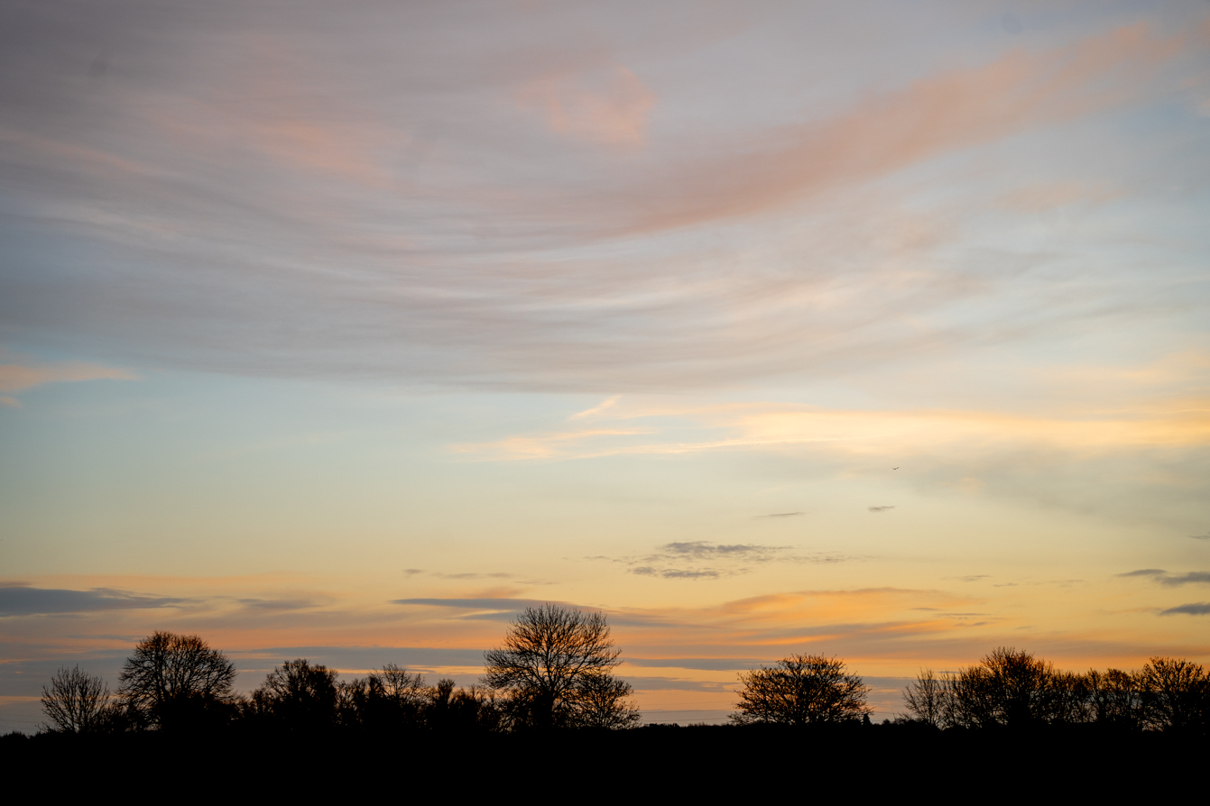 Fri 28 Jan 22: lots of fluffy clouds during the afternoon and good sunshine but then we got a big bank of clouds in the west at sunset time. Never mind, maybe this view to the south/southwest is a little more subtle than the full on blazing red of a full blown winter light fest.