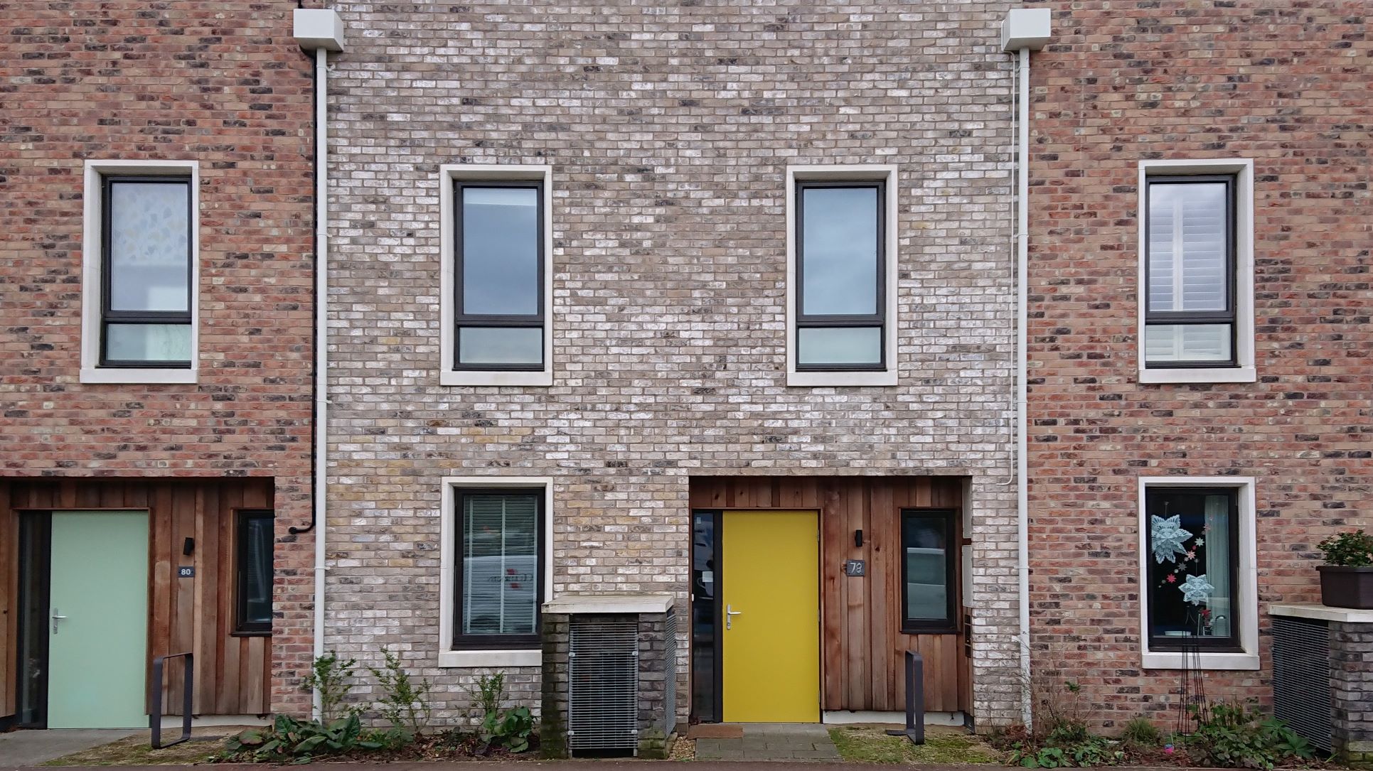 Wed 2 Feb 22: not typical but then this is the outer perimeter of Marmalade Lane, a co-housing community. As the Guardian said it’s a ‘car-free, triple-glazed, 42-house oasis’ and it looks like it’s been built to a higher spec with more than your usual amount of architect input.