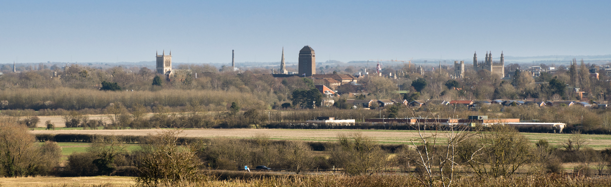 Sun 27 Feb 22: There’s a barely perceptible vantage point at the bottom end of the Coton Countryside Reserve which, given that Cambridge is flat, gives you sight of Cambridge’s skyline, for what it’s worth. Left to right I think you’ve got St John’s College Chapel, the chimney at the Museum of Technology, All Saint’s Church, the University Library, Great St Mary’s and King’s College Chapel. Nice enough view but the experience isn’t improved by the noise from the nearby M11.