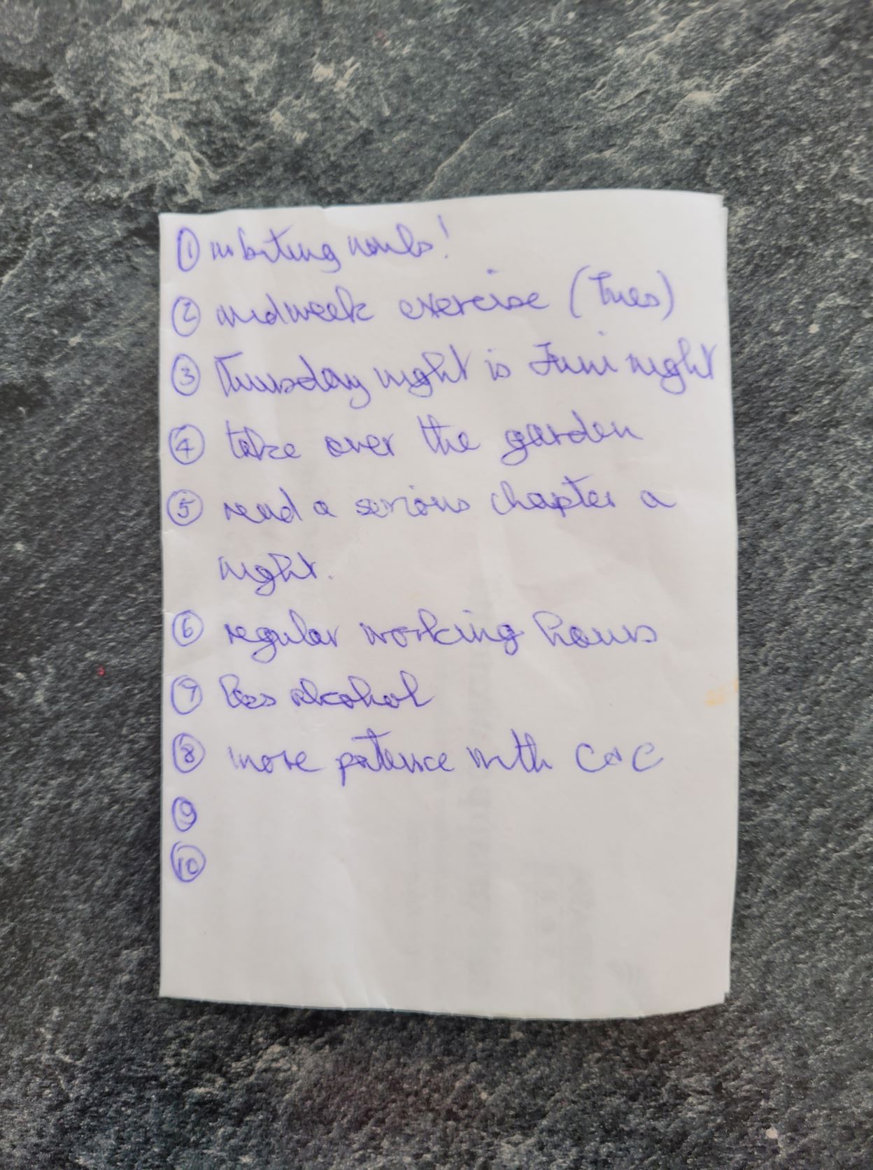 Mon 18 Apr 22: Mrs J’s having a clear out and came across this document which seems to date from Dec 98/Jan 99. It’s on the reverse of hotel stationery which places it at that time and it seems to be a list of New Year’s resolutions. I’ll be doing a blog about it on http://www.davidjenkins.org.uk.