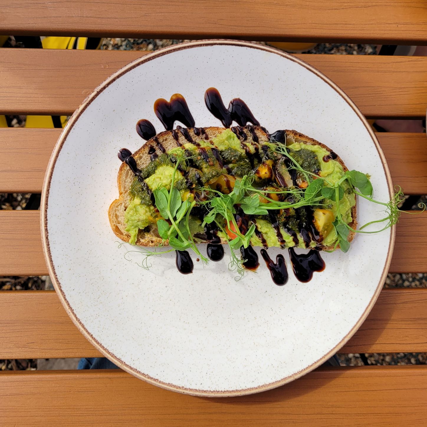 Mon 2 May 22: always a pleasure to meet Pippa Heylings for a catch up and this is often at the Station House. The weather was good so we sat outside and I got my daily dose of avocado.