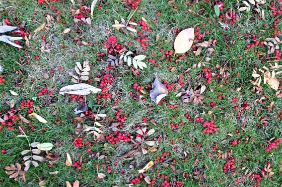 Sun 7 Nov 21: rowan berries and leaf fall. Maybe the nearest we’ll get to New England.